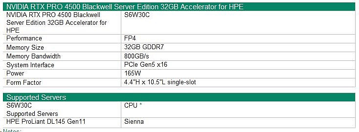 NVIDIA RTX PRO 4500 Blackwell Server Edition 32GB PCIe Accelerator for HPE.