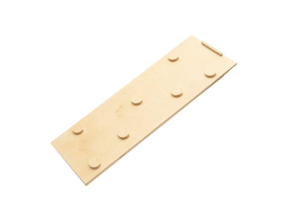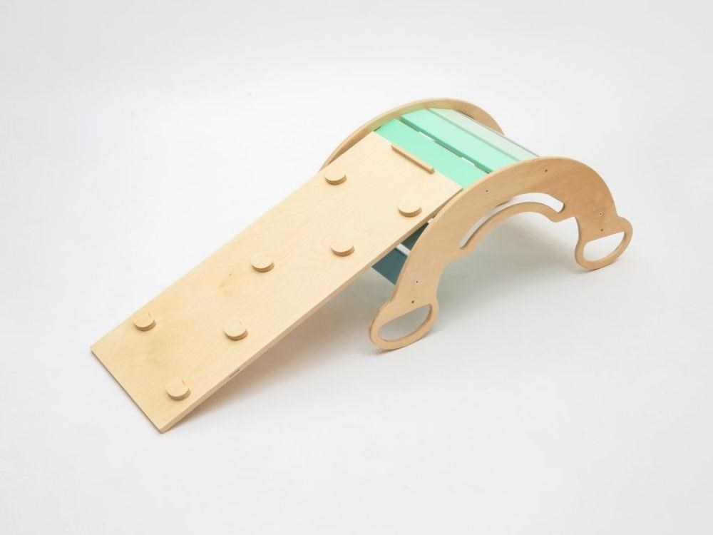 Kvalitný drevený obojstranný kúsok (len k hojdačke SMILE) má všestranné využitie. Z jednej strany zábavná šmykľavka, po ktorej sa deti zosunú možno na mäkký podložku, na druhej strane lezecká doska s úchytmi, ktorá rozvíja pohybové zručnosti vašej dievčatka aj chlapca. Obojstranná doska je doplnkom k Montessori hojdačke SMILE. Položená na bočnej hrane hojdačky smile vytvorí deťom praktický stolček na desiatu aj na maľovanie. Obojstranné prkno nie je možné používať s Montessori hojdačkami 5in1 ELIS DESIGN. Prkno je širšie ako naše dúhové a drevené hojdačky. PRKNO JE DOPLNKOM IBA KU MONTESSORI HOJDAČKÁM SMILE, ktorú premení na detský stolček.
