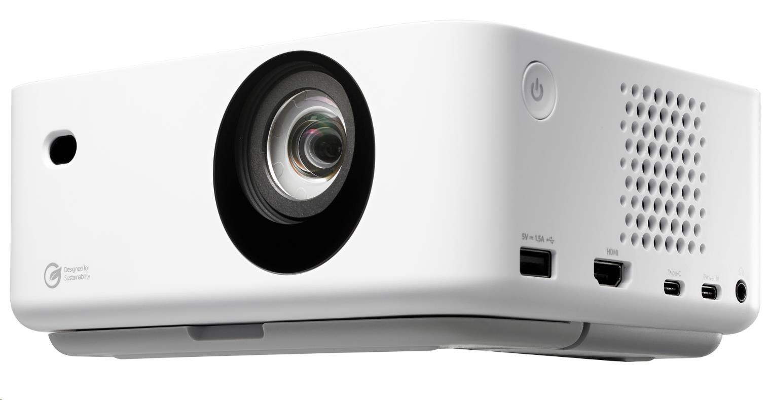 Inovatívna technológia Time-of-Flight (ToF) zabezpečuje automatickú geometrickú korekciu a korekciu zaostrenia a počas okamihu vytvára dokonale projekciou obraz. Korekcia štyroch rohov navyše umožňuje okamžité umiestnenie a prehrávanie. Domácim používateľom môže poslúžiť praktický vstupný napájací port USB-C, ktorý im umožní používať prenosné nabíjacie batérie PD 3.0 a vychutnať si video obsah na cestách pri sledovaní filmov v prírode, kempovaní, na dovolenke a podobne.