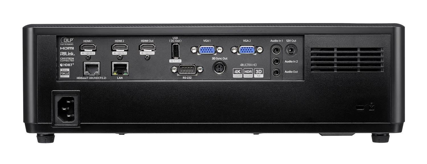 Pridaná flexibilita ovládania HDBaseT 3.0 pre nekomprimovaný audio a video obsah, RS232, LAN a OMS (Optoma Management Suite) Local robí z tohto projektora cenovo dostupné riešenie pre nastavenie a zabudnutie.