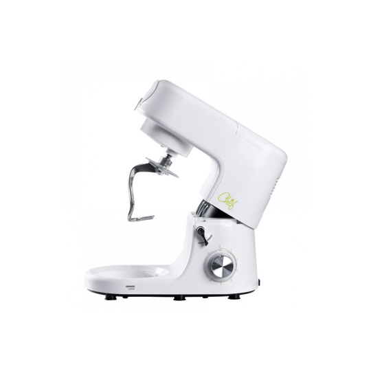 Vysokokvalitný kuchynský robot Chef 1 je úžasný pomocník, ktorý za vás odvedie ťažkú prácu pri varení a pečení. Vďaka nemu bude vaša kuchyňa ušetrená od namáhavej práce pri varení, pečení a miešaní. Vyzerá ako šéfkuchár – štýlová biela farba s čiernymi a nerezovými akcentmi pôsobí ako neprehliadnuteľný profesionál, ktorý nájde svoje miesto v každej kuchyni bez ohľadu na štýl zariadenia, ale jeho silné stránky nie sú len vzhľad, ale aj schopnosti. 6 rýchlostí a pulzný režim zvládnu všetko: v 7-litrovom nerezovom míse uhnietete a vyšľaháte dokonalé cesto a krémové torty, kovový mlynček na mäso jednoducho namele mäso na poctivý domáci hamburger. Na trojstupňovej strúhadle môžete krájať a strúhať zeleninu a ovocie do šalátov, ale aj do sladkých a slaných koláčov. 1,5 litrová sklenená mísiaca misa je ideálna na prípravu polievok, omáčok a zdravých smoothie. S jej pomocou ľahko vykúzlite sladké cukrovinky. Jednoducho sa rozoberá na menšie časti, ktoré je možné ľahko umyť pod tečúcou vodou. Chef je vybavený gumovými prisávačmi pre stabilné upevnenie na pracovnej ploche.
