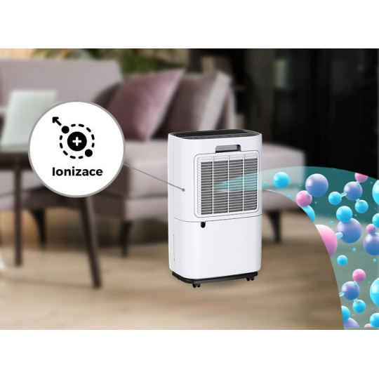 Ionizácia v odvlhčovači Dehum 1 má niekoľko dôležitých funkcií, ktoré prispievajú k zlepšeniu kvality vzduchu v miestnosti. Ionizácia prispieva k tomuto procesu tým, že záporné nabité ióny interagujú s molekulami vody vo vzduchu a spôsobujú, že kvapky vody sa zrážajú do väčších častíc. Odvlhčovač vzduchu s ionizáciou tak zlepšuje nielen vlhkosť vo vzduchu, ale aj jeho čistotu a môže mať pozitívny vplyv na prostredie v miestnosti a pohodu ľudí.
