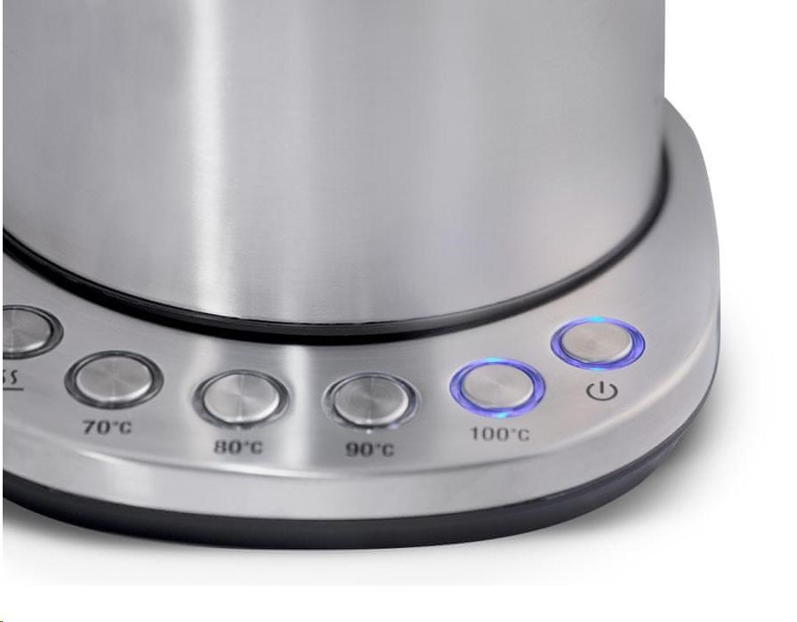 Kanvica umožňuje nastaviť teplotu ohrevu v rozmedzí 70 °C až 100 °C, takže si ju môžete prispôsobiť typu nápoja, ktorý chcete pripraviť.