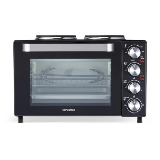 Orava Elektra-X28 elektrická trouba s dvouplotýnkou, 28 L, 2600 W, grilovací rošt, černá