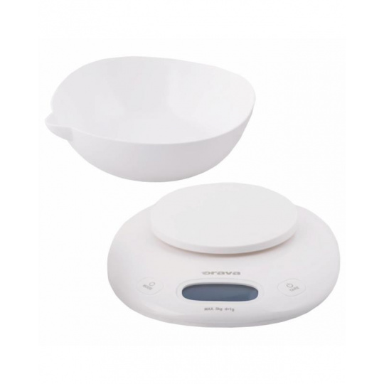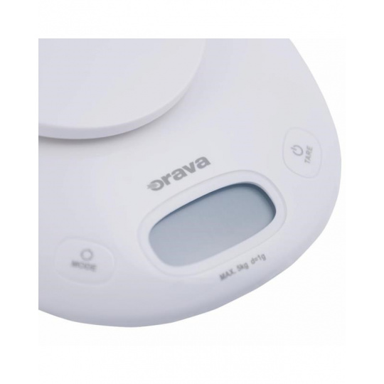 ORAVA EV-14 digitální kuchyňská váha s miskou, LCD displej, funkce TARE, přesnost 1 g