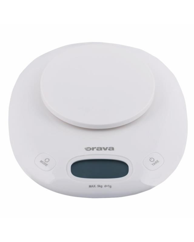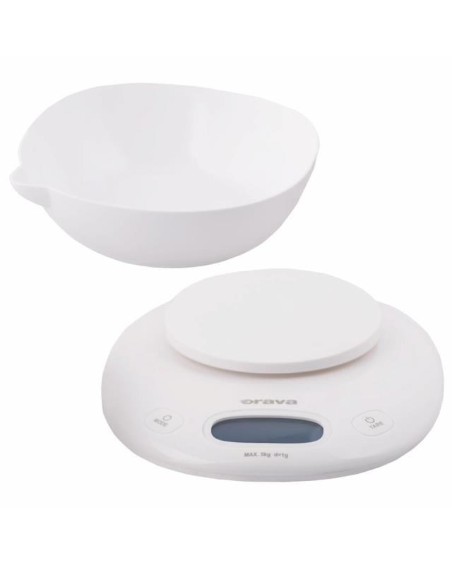 ORAVA EV-14 digitální kuchyňská váha s miskou, LCD displej, funkce TARE, přesnost 1 g