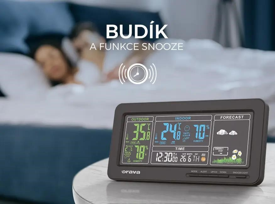 Nastavte si svoju meteostanicu aj ako budík! A ak si chcete dopriať ešte pár minút vytúženého spánku, využite funkciu zdriemnutia (SNOOZE), ktorá vám budík odloží o 5 minút.
