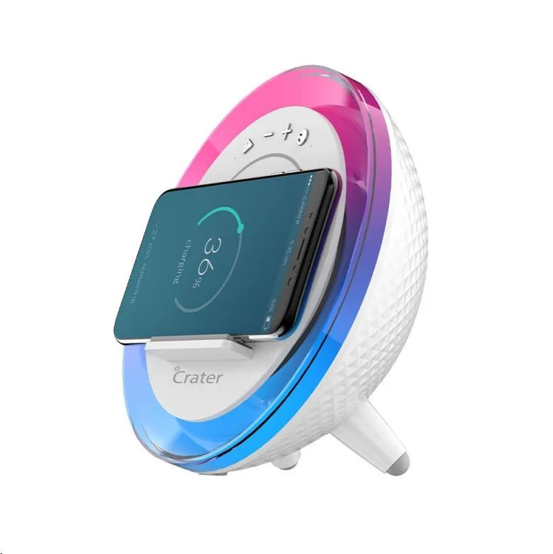 V neposlednom rade využijete Crater-9 tiež na doplnenie „šťavy“ pre váš smartphone. Na nabíjanie využíva bezdrôtovú Qi technológiu s výkonom 10 W, čo je nielen pohodlné, rýchle, ale aj šetrné. Vyhnete sa hľadaniu nabíjacieho kábla a jeho zbytočnému ohýbaniu a šetríte aj nabíjacie porty mobilného telefónu. Smartfón stačí položiť na vyznačenú plochu určenú na nabíjanie, kde sa vám mobil s podporou Qi technológie elegantne nabije, aj keď práve počúvate hudbu alebo sladko spíte.