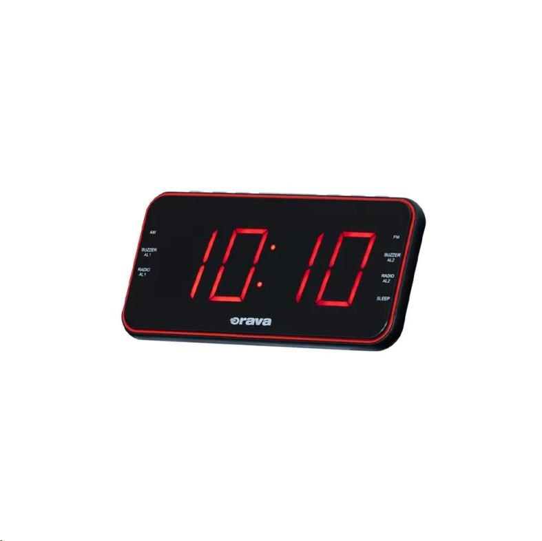 Orava radiobudík s velkým červeným LED displejem, funkce SNOOZE, SLEEP, DIMMER, nabíjení externího zařízení