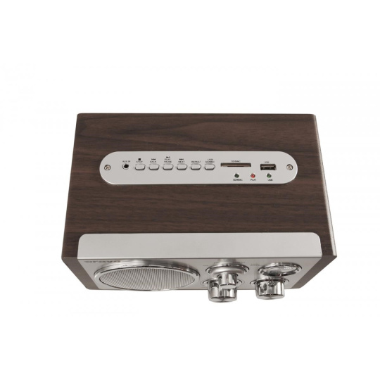 Retro rádio v elegantnom drevenom prevedení ,Širokopásmový reproduktor pre kvalitnú reprodukciu zvuku ,Analogový AM / FM tuner s ručičkovým ukazovateľom ,USB vstup, zabudovaná čítačka SD / MMC kariet ,Podpora prehrávania WMA / MP3 z USB / SD zariadení ,Manuálne ladenie rádiových staníc ,Jednoduché ovládanie ,teleskopická anténa ,3,5 mm AUX konektor pre pripojenie externého zdroja zvuku ,Maximálny výstupný výkon: 3 W ,Napájanie: 230V ~ 50Hz, 13 W, 6V (4x 1,5V AA) ,