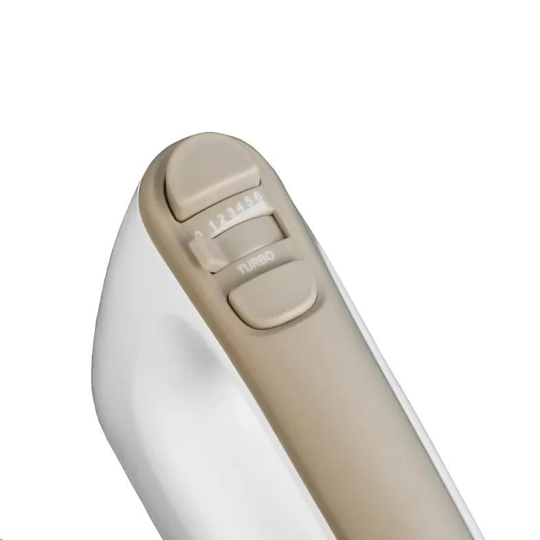 - Motor mixéra má výkon 400 W a ponúka až 6 rýchlostí, ktoré sú doplnené o funkciu TURBO.