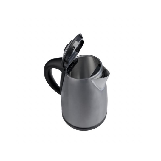Elektrická varná konvica - šedá. Varná nádoba z ušľachtilej nerezovej ocele. Objem 1,7l. Otváranie vrchného víka konvice stlačením tlačidla. Varná nádoba na odnímateľnom 360° otočnom podstavci. Priemyselná teleso prekryté doskou z ušľachtilej ocele. Stupnica hladiny vody. Ochrana pred ohrevom bez vody. Auto vypnutie. Vyberateľné filtračné sitko na vodu. Sieťová šnúra odkladateľná v podstavci. Napájanie 230V 50 Hz, 2000 W