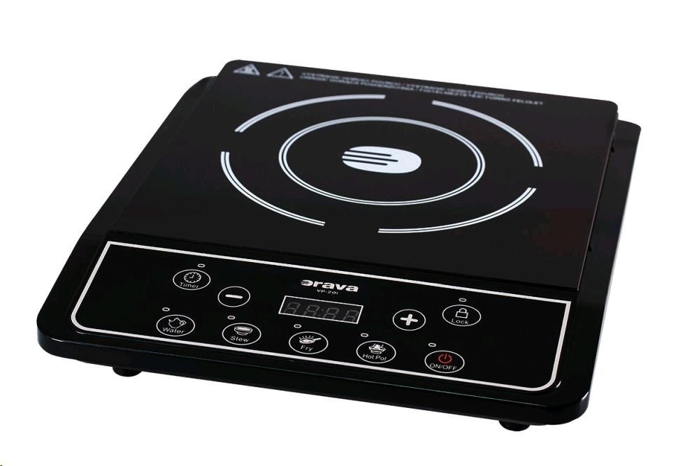 Indukčný varič Orava. Indukčný varič s nezávislou reguláciou displejom, časovačom a automatickým vypnutím. Varič Vám pri varení ušetrí veľa času aj elektrickej energie.