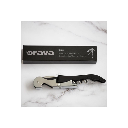 Orava WO-8 pákový otvírák na víno a pivo, dvoustupňový, praktický nožík, černá