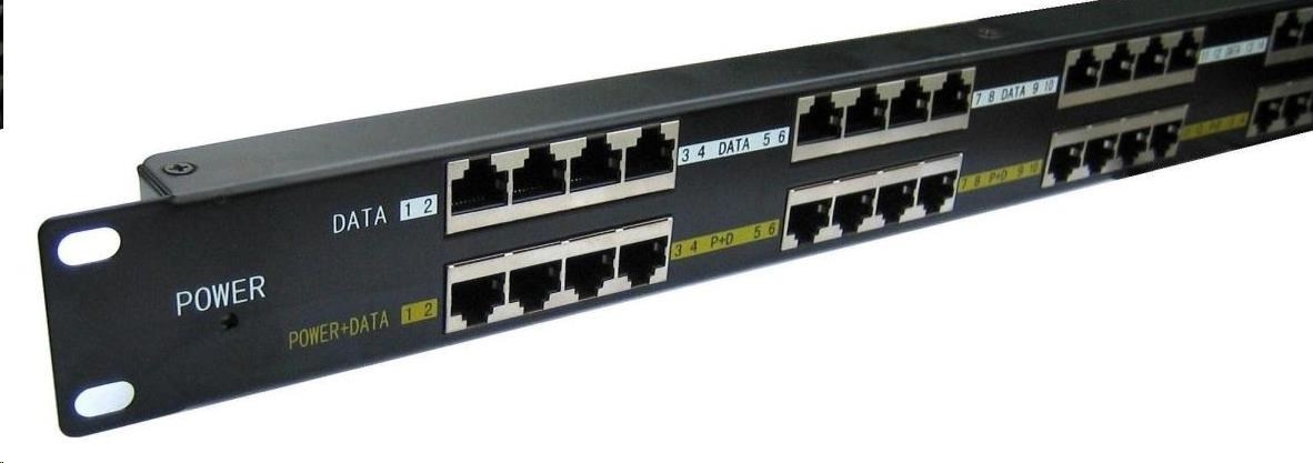 Pridaním tohto priechodného panelu do rozvádzača získate napájacie centrum, ktoré ľahko pripojíte medzi existujúci prepínač a patch panel, ktorý už vedie k napájanému zariadeniu (IP kamera, IP telefón, bezdrôtové prvky atď.).