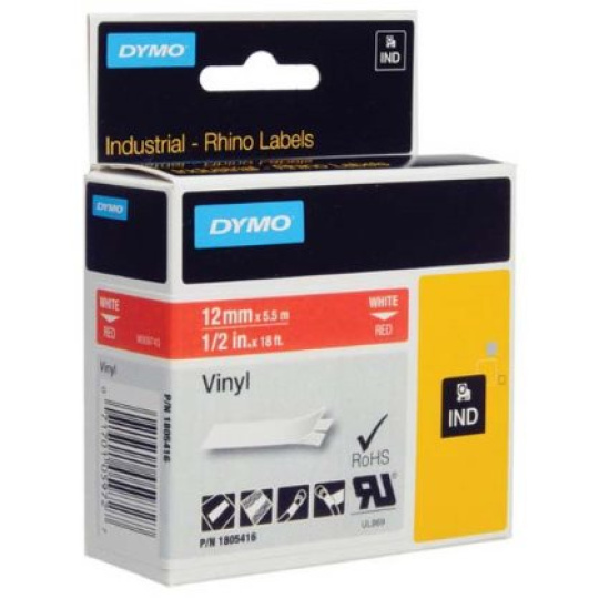 páska DYMO 1805416 PROFI D1 RHINO White On Red Vinyl Tape (12mm)