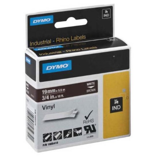 páska DYMO 1805418 PROFI D1 RHINO White On Brown Vinyl Tape (19mm)