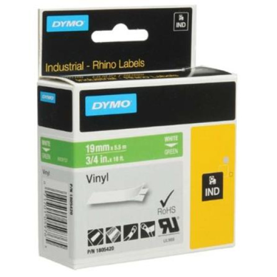 páska DYMO 1805420 PROFI D1 RHINO White On Green Vinyl Tape (19mm)