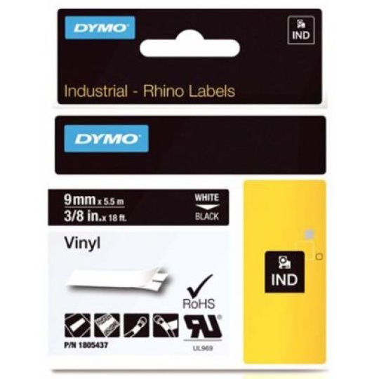 páska DYMO 1805437 PROFI D1 RHINO White On Black Vinyl Tape (9mm)