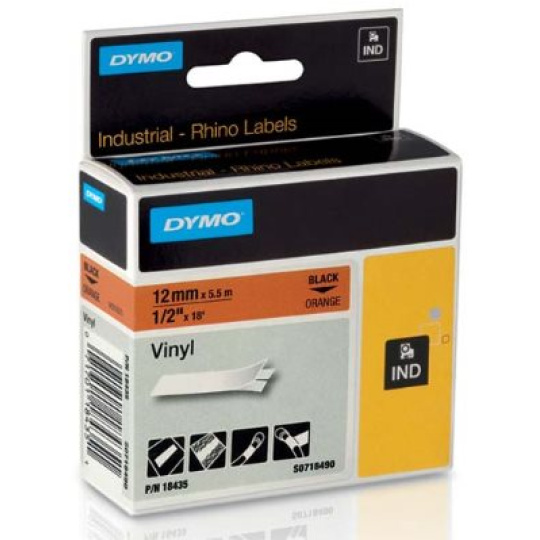 páska DYMO 18435 PROFI D1 RHINO Black On Orange Vinyl Tape (12mm)