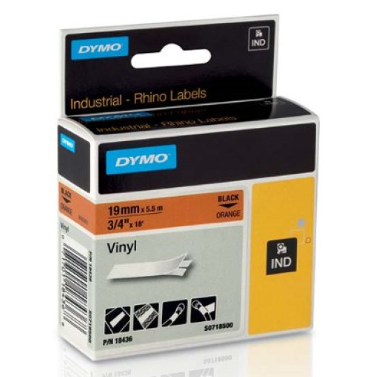 páska DYMO 18436 PROFI D1 RHINO Black On Orange Vinyl Tape (19mm)