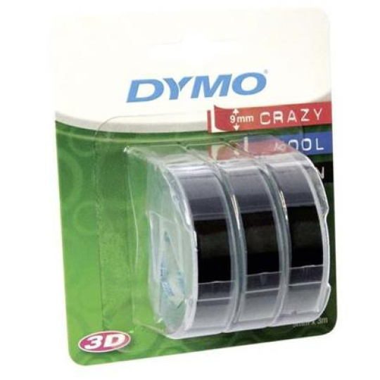 Popisovacia páska určená pre produkty DYMO 9mm Páska 3D reliefná, 9 mm x 3 m, čierna (3ks) PÁSKY 3D PRE MECHANICKÉ ŠTÍTKOVAČE - PROFESIONÁLNE A DOMACE