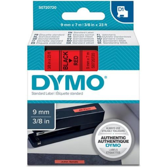 Popisovacia páska určená pre produkty DYMO 9mm čierne písmo, červená páska PÁSKY D1 DO ŠTÍTKOVAČOV DYMO rady LP, LM, RHINO 5000, RHINO 5200, RHINO 6000, ILP219, LW 400 Duo a LW 450 Duo