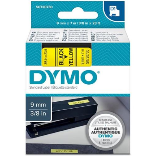 Popisovacia páska určená pre produkty DYMO 9mm čierne písmo, žltá páska PÁSKY D1 DO ŠTÍTKOVAČOV DYMO rady LP, LM, RHINO 5000, RHINO 5200, RHINO 6000, ILP219, LW 400 Duo a LW 450 Duo