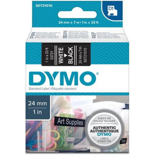 Popisovacia páska určená pre produkty DYMO 24mm biele písmo, čierna páska PÁSKY D1 DO ŠTÍTKOVAČOV DYMO rady LP, LM, RHINO 5000, RHINO 5200, RHINO 6000, ILP219, LW 400 Duo a LW 450 Duo