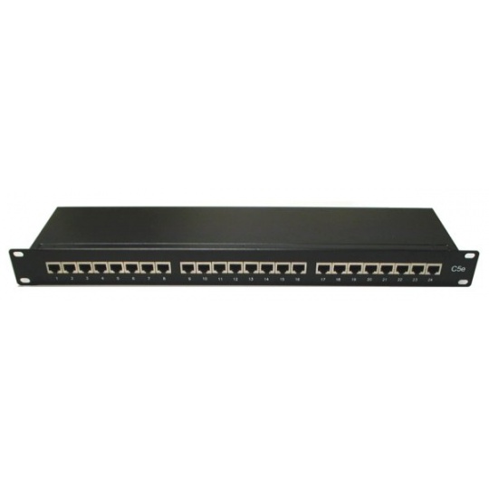 19" Patch panel LYNX 24port, STP, Cat6, 30µm, dvojitá svorkovnica, čierny