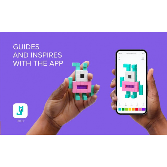Každý produktový balík PIXIO obsahuje bezplatný kód, ktorý vám umožní prístup k exkluzívnemu obsahu aplikácie. Stiahnite si aplikáciu z Google Play alebo APP Store a preskúmajte viac ako 1000 nápadov, ako vytvoriť pixelové objekty a 3D tvary.