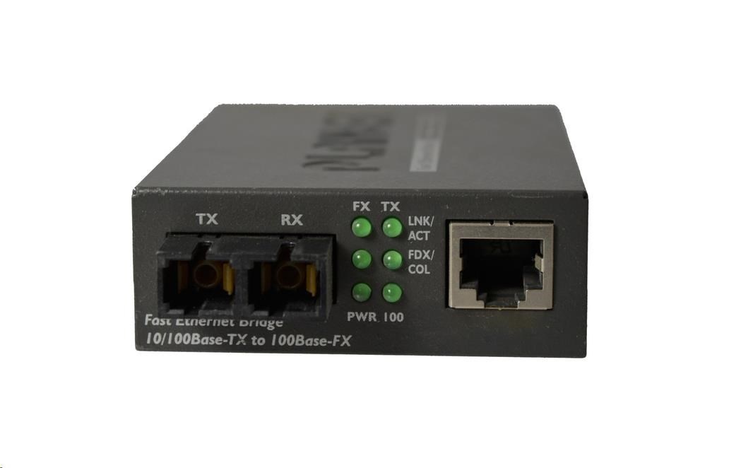 Konvertor s integrovaným prepínačom Fast Ethernet. Vysoko kompaktný dvojportový prepínač Fast Ethernet navrhnutý na jednoduchý prechod medzi metalickou a optickou kabelážou. Vďaka tomu, že ide o skutočné prepínače, sú jednotlivé segmenty siete, ktoré sa majú pripojiť, vždy kolízne oddelené, a preto je ich dosah vždy maximálny.