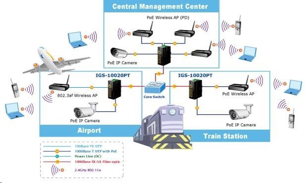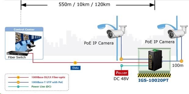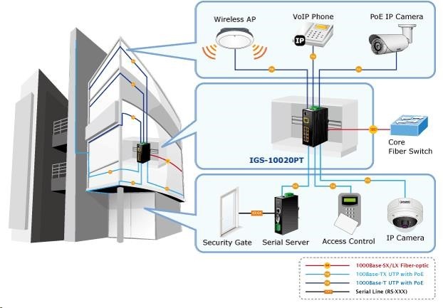 Planet IGS-10020PT PoE switch 8x 1000Base-T, 2x SFP, 802.3af 130W, IP30, -40 až 75°C, SNMP, IGMPv3, IPv6 Inteligentné prepínače pre priemyselný Ethernet sú určené do náročných prevádzkových podmienok so širokým rozsahom prevádzkových teplôt, neistým napájaním a častými otrasmi. Zároveň poskytujú vynikajúce možnosti viacnásobného prepojenia na dosiahnutie robustného prepojenia systému s veľmi nízkym časom obnovy. IGS-10020PT je vybavený pre redundanciu okrem známej metódy Spanning Tree (ktorej čas obnovy sa pohybuje v sekundách) najmä špecializovanou funkciou "Redundant ring", ktorá má čas obnovy a nájdenia novej cesty do 300 ms. Ako prepínač PoE môže priamo napájať až 8 zariadení IEEE 802.3af, takže je ideálny pre aplikácie s nedostatkom energie. Prepínače radu IGS sa ľahko inštalujú na štandardnú lištu DIN alebo priamo na stenu a umožňujú nasadenie známej technológie Ethernet aj v priemyselnom prostredí. Sú vhodné aj na inštaláciu vo vonkajších krytoch s veľkými výkyvmi prevádzkových teplôt (typicky bezdrôtové aplikácie a aplikácie MAN ISP). Vlastnosti: - 8 portov 1000Base-T, prepínanie, plný duplex (1000/2000 Mb/s), automatické vyjednávanie (10/100/1000 Mb/s), automatická detekcia priameho/krížového kábla na každom porte - pre všetky PoE IEEE 802.3af injektory so zaťažiteľnosťou 15,4 W/port, spolu až 130 W - 2 porty SFP na inštaláciu modulov 1000Base-SX/LX/BX alebo 100Base-FX - Priepustnosť: zbernica 20 Gb/s, prevádzková: 14,8 Mp/s (64B) - Podpora Jumbo Frame až 9 kB, 8k MAC adries, 4Mbitová vyrovnávacia pamäť - 255 VLAN IEEE 802.1Q, siete založené na MAC alebo protokole VLAN, VoIP VLAN - port trunking IEEE 802.3ad LACP - IGMP v1,v2,v3 až do 256 multicast skupín, režim IGMP querier - 8-úrovňová prioritizácia prevádzky QoS podľa portov, DSCP/ToS, 802.1p alebo 802.1Q tagy - podpora Spanning Tree IEEE 802.1d, Rapid Spanning Tree IEEE 802.1w - IP/MAC ACL (access control list) do 123 pravidel, MAC/IP binding - DHCP snooping - port shaper - administrace Web/SNMPv3 s podporou zabezpečeného přenosu SSH/SSL - podpora IPv4/IPv6 - PoE scheduler pro možnost zapínání/vypínaní napájení podle časového plánu - pole LED indikátorů pro diagnostiku provozu - instalace na DIN lištu, montážní díl součástí - instalace na zeď, montážní díl součástí - krytí IP30 - napájení: 48V DC redundantní, připojení možné ze dvou různých zdrojů (nejsou součástí balení); vlastní příkon do 30W - ochrana proti přepólování, připojení napájení na svorkovnici, umístění na spodním panelu (nepřekáží při montáži na zeď) - přepěťová ochrana napájení do 6kV proti napěťovým špičkám (EFT) - přepěťová ochrana LAN portů do 6kV proti elektrostatickému náboji (ESD) - spínací poplachové relé (24V/1A) při výpadku primárního napájení - zařízení je odolné proti pádu (IEC-60068-2-32) z výšky 7.