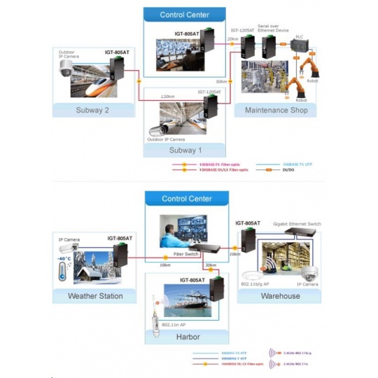 Ethernetový konvertor 100/1000Base-T na optické vlákno s voľným SFP portom, určený pre priemyselné aplikácie a FTTH. Redundantné napájanie v rozsahu DC 12-48V/AC 24V, krytie IP30, hliníkový kryt, prevádzková teplota -40~75°C. Montáž na lištu DIN alebo priama montáž na stenu. Priemyselné ethernetové zariadenia sú navrhnuté pre náročné prevádzkové podmienky so širokým rozsahom prevádzkových teplôt, neistým napájaním a častými otrasmi. Konvertor sa ľahko inštaluje na štandardnú lištu DIN alebo priamo na stenu a umožňuje nasadenie známej technológie Ethernet aj v priemyselnom prostredí. Je vhodný aj na inštaláciu vo vonkajších krytoch s veľkými výkyvmi prevádzkových teplôt (typicky bezdrôtové aplikácie a aplikácie MAN ISP FTTH). ZÁKLADNÍ SPECIFIKACE Fyzické vlastnosti: Porty: 1 x RJ-45 10/100/1000BASE-T, 1 x SFP 1000BASE-SX/LX/BX Provedení: DIN lišta, na zeď Podpora OAM: ne Napájení: zdroj 24-48V DC nebo 24V AC, připojení možné ze dvou různých zdrojů (nejsou součástí balení), celkový příkon do 3,3W Ochrana: ESD do 6KV DC, EFT do 6KV DC, ochrana proti přepólování, připojení napájení na svorkovnici, umístění na spodním panelu (nepřekáží při montáži na zeď) Provozní teplota: -40 až 75°C Rozměry: 135 x 87 x 32 mm Hmotnost: 458 g Lze instalovat do šasí: ne Průmyslové vlastnosti: zařízení je odolné proti pádu (IEC-60068-2-32) z výšky 75 cm na všechny dopadové části zařízení je odolné proti vibracím (IEC-60068-2-6) zařízení je odolné proti přetížení krátkodobému zrychlení 50g, dlouhodobému 4g, (IEC-60068-2-27) elektrická bezpečnost dle CE EN-60950 EMC Elektronická kompatibilita (EMI): ČSN EN 55032:2015+AC 2016 - Elektromagnetická kompatibilita multimediá.