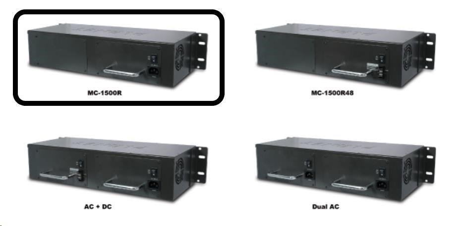 Planet MC-1500R, 15 slotů pro media konverotry, 19"/2,5U, napájení AC 230V, možno dokoupit DC 48V zdroj (redundance)