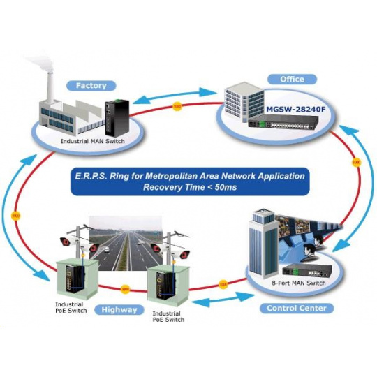 Planet MGSW-28240F Metro switch 24x SFP(DDM), 4x SFP+, 4x TP, AC+DC, DI/O, Web/SNMPv3, IGMPv3, IPv6