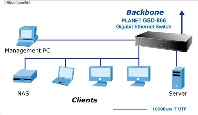 Planet switch GSD-805 10/100/1000 (8x1000BASE-T), interní napájení, kov