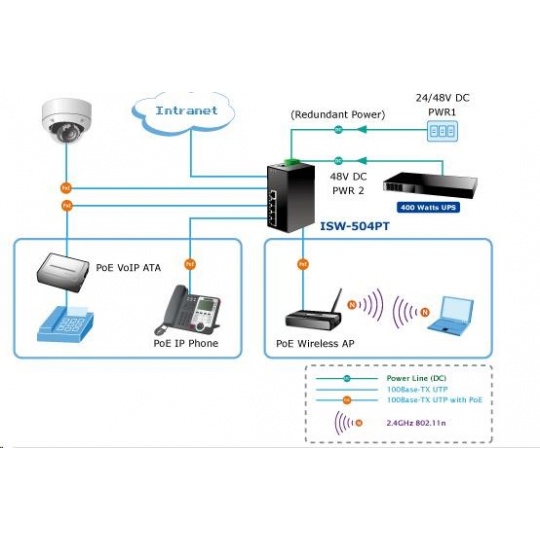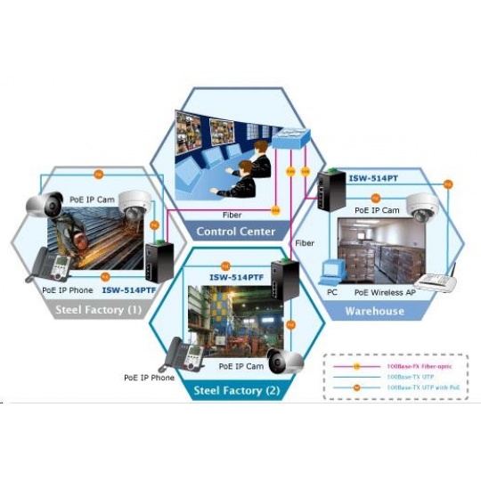 Planet switch ISW-514PTF, průmysl.verze 4x10/100+1x100BaseFX (SFP), DIN, IP30, -40 až 70°C, 12-48V