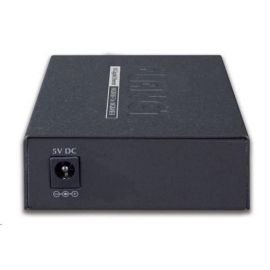 Jednoduchý mediálny konvertor vybavený kovovým konektorom RJ-45 s rýchlosťou 100/1000/2,5G/5G/10G a optickým portom SFP+ s rýchlosťou až 10GBASE. Je vhodný na použitie v sieťach, kde sa vyžaduje extrémne vysoká šírka pásma, ako sú dátové centrá, cloudové úložiská alebo infraštruktúra operátorov. Vďaka spoľahlivosti sú zaručené vysoké prenosové rýchlosti bez rizika straty paketov pri extrémnych rýchlostiach. Samozrejmosťou je ochrana do 6 KV DC ESD. Ďalšou výhodou je nízka spotreba energie 3,75 W pri plnom zaťažení. ZÁKLADNÉ ŠPECIFIKÁCIE Fyzické vlastnosti Porty: 1 x RJ-45 100/1000/2,5G/5G/10GBASE-T, 1 x SFP+ 10GBASE-XR Podpora prenosu: 16K JumboFrame Priepustnosť: zbernica 20 Gb/s, prevádzkovo 2,48 Mpps (64B) Tabuľka záznamov: 9K MAC adries Konštrukcia: vnútorná Napájanie: 5V DC, max. 2A., celkový príkon do 3,75 W Ochrana: ESD 6 KV DC Prevádzková teplota: 0 až 50 °C Rozmery: 94 x 70 x 26 mm Hmotnosť: 180 g..