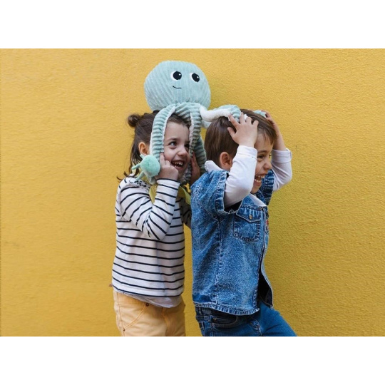 Hrkálka Plyšová 2v1, v podobe roztomilej chobotnice s bábätkom, očarí malé aj veľké deti. Úžasne hebký plyšák je krásnym darčekom k narodeninám bábätka aj ku každej inej príležitosti. Plyšová chobotnica so svojimi 8 chapadlami je pripravená si s deťmi hrať, maznať sa a robiť im spoločnosť doma aj na cestách. Pod hlavou chobotnice sa skrýva prekvapenie, malá chobotnička. Chobotnicu s bábätkom ponúkame vo viacerých farebných variantoch.