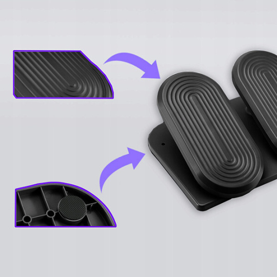 Strukturovaný povrch poskytuje masáž chodidel během cvičení. Tato stimulace může napomoci zlepšení cirkulace krve a přináší příjemný pocit pohodlí, zejména při delším užívání stepperu. Strukturovaný povrch přispívá také k lepší stabilitě chodidel na pedálech. To je klíčové pro udržení rovnováhy během protahování nohou a minimalizaci rizika nechtěných pohybů nebo skluzu.