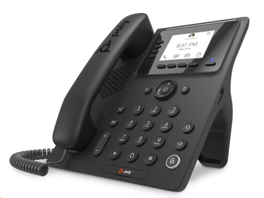 | Audio | Technológia Poly Acoustic Clarity zabezpečuje plne duplexné hovory a potláča akustickú ozvenu aj okolité šumy; Individuálne nastavenie hlasitosti s vizuálnou spätnou väzbou pre každú zvukovú cestu; Komfortná tvorba hluku; Generovanie tónov DTMF (RFC 2833 a v pásme); Prenos zvukových paketov s nízkym oneskorením; Analyzovateľná pamäť na vyrovnanie oneskorenia |