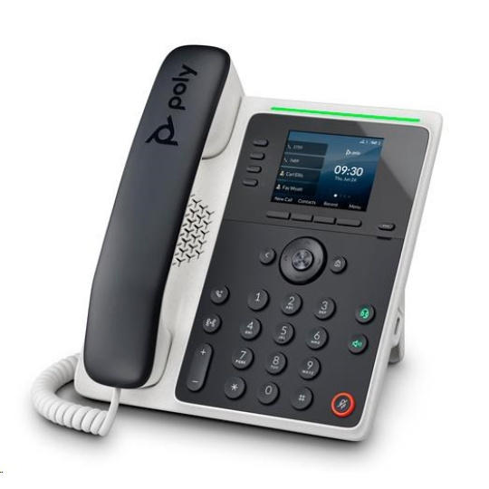 | Zvuk | Aplikácia Poly Computer Audio Connector nainštalovaná v počítači (iba v systéme Windows) umožňuje vybrať telefón na zvukový vstup/výstup počítača a používanie slúchadla telefónu, voliteľnej náhlavnej súpravy a reproduktora ovládaného bez rúk s počítačovými aplikáciami; Širokopásmový zvuk TIA-920 v súlade s typom 1 (plne obojsmerný podľa normy IEEE 1329); Individuálne nastavenia hlasitosti s vizuálnou odozvou pre každú cestu zvuku; Detekcia hlasovej aktivity; Generovanie komfortného šumu; Generovanie tónov DTMF (RFC 2833 a v pásme); Prenos zvukových paketov s krátkym oneskorením Overenie 802.1x a šifrovanie médií EAPOL prostredníctvom SRTP; Overenie Digest; Šifrované konfiguračné súbory; Bezpečné poskytovanie prostriedkov cez HTTPS; |
