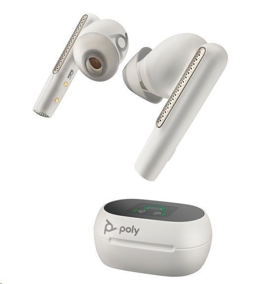 Biele nabíjacie puzdro s dotykovou obrazovkou Poly Voyager Free 60+ UC pre adaptér BT700 USB-A