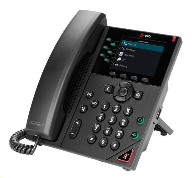 | Audio | Poly HD Voice; Technológia Poly Acoustic Clarity zabezpečuje plne duplexné hovory a potláča akustickú ozvenu aj okolný šum; Technológia Poly Acoustic Fence potlačuje okolný hluk pri použití slúchadla alebo káblového náhlavného súpravy; Aplikácia Poly Computer Audio Connector nainštalovaná v počítači (len Windows) umožňuje vybrať telefón pre zvukový vstup a výstup počítača a použiť s počítačovými aplikáciami slúchadlo, voliteľnú náhlavnú súpravu a handsfree hlasitý odposluch; Individuálne nastavenie hlasitosti s vizuálnou spätnou väzbou pre každú zvukovú cestu; Detekcia hlasovej aktivity; Komfortné tvorenie hluku; Generovanie tónov DTMF (RFC 2833 a pásmo); Prenos zvukových paketov s nízkym oneskorením; Adaptívna pamäť pre vyrovnanie oneskorenia |