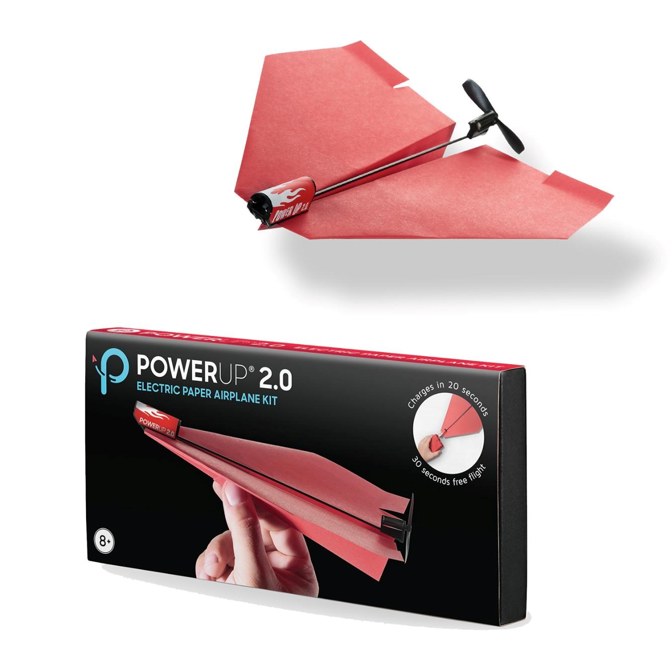 Skladanie papierových lietadiel baví každú generáciu. Sada PowerUp 2.0 RED vybaví obyčajné papierové lietadlá vlastným elektrickým pohonom, vďaka ktorému ostanú vo vzduchu dlhšie ako pol minúty a uletia desiatky metrov.