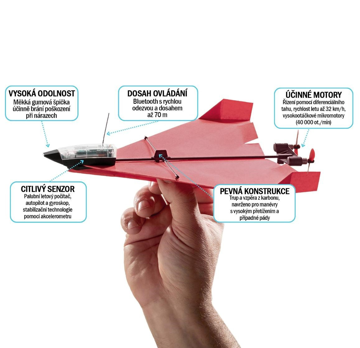 Zaobídete sa bez technických znalostí alebo zdĺhavého študovania manuálov. Základný model podľa priložených šablón zložíte rovnako ľahko a rýchlo, ako by ste skladali klasické papierové lietadlo. Následne stačí pripevniť modul s motorom a vyrovnávaciu tyč, všetko zaistiť lepiacou páskou (keby ste náhodou búrali), spárovať s telefónom a môžete štartovať. Rýchloupínací systém umožňuje experimentovať nielen s obyčajným papierom, ale aj s ľahkým kartónom, balzovým drevom alebo penovými materiálmi. Palubný počítač navyše sám dorovnáva drobné nepresnosti v skladaní, takže aj úplní začiatočníci zažijú hladký let hneď na prvý pokus.