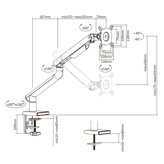 Prémiový stolný držiak na monitor Fiber Mounts M4C37 Ergonomický polohovateľný držiak na monitory 17-32", VESA 75x75 a 100x100, nastavenie vzdialenosti monitora od stolového uchytenia, nastavenie výšky, otáčanie do strán, naklopenie, funkcia pivot, plynová pružina, nosnosť 9kg, 2 stolové úchyty, vedenie káblov, farba biela Kancelársky držiak prémiovej kvality a krásneho dizajnového spracovania v bielej farbe so striebornými krytmi. Držiak poskytuje najvyššiu ergonómiu - komplexnú nastaviteľnosť: výškové polohovanie, nastavenie vzdialenosti od stolového uchytenia, otáčanie do strán, naklopenie, funkcia pivot pre otočenie obrazovky na šírku alebo na výšku. Balenie obsahuje 2 typy uchytenia na stolové dosky: na okraje stolov alebo cez prechodku (1x otvor min. 10mm) kdekoľvek v priestore stola. Polohovanie je veľmi jednoduché a rýchle, pozíciu monitora môžete meniť podľa potreby x krát denne. Odporúčame aj veľmi náročným zákazníkom alebo do kancelárií, kde chcú poskytnúť zamestnancom skvelú ergonómiu a pohodlie pri práci, to všetko navyše v krásnom dizajnovom prevedení. Ergonomický držiak monitora v prémiovej kvalite Fiber Mounts M4C37 Technické údaje: nosnosť 9kg plynová pružina s nastavením podľa hmotnosti monitora odporúčaná uhlopriečka monitora 17-32" podpora VESA štandardov 75x75 a 100x100 výškové polohovanie 260mm minimálna výška 175mm, maximálna výška 435mm vzdialenosť monitora od stolového uchytenia 0-549mm funkcia pivot na nastavenie monitora na šírku alebo na výšku uchytenie na stolové dosky priemeru 10-80mm 2 typy uchytení na stoly: svorka na okraj stola a skrutka na prechodku (otvor min. 10mm) systém na vedenie káblov farebné prevedenie biele, krytky strieborné záruka 5 rokov Prémiový dizajnový držiak na monitory ergonomický do kancelárií Fiber Mounts M4C37 Držiak M4C37 podporuje VESA štandardy: VESA 75x75 VESA 100x100 možnosť zakúpenia aj s rozšírením na VESA 200x100 a 100x200 možnosť zakúpenia aj s rozšírením na VESA 200x200