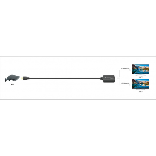 PremiumCord HDMI 2.0 Mini splitter 1-2 Pigtail 4Kx2K@60Hz HDCP2.2 Downscaler