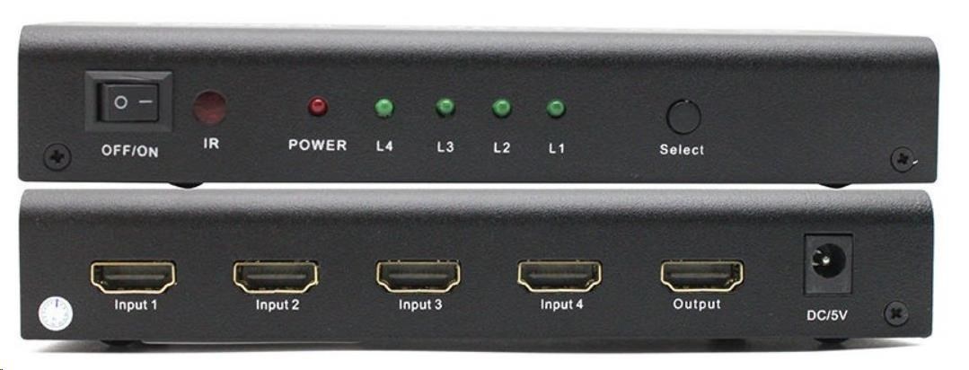 PREMIUMCORD HDMI prepínač 4:1 s audio výstupmi ( stereo, Toslink, koaxiálny )